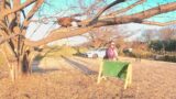 ①必ずほこ(幅1Mやあるいは鉄棒)に止まれる事ができグローブにすぐに戻せること(第一ポイント)、②その流れで高い場所(木や建物のフェンス)に飛ばしてすぐに呼び戻しが出来る事(第二ポイント)、③そして数メートルでも走ってハリスを台(ジャンプアップで使用したバケツ)に降ろし(第3ポイント)、④畑の枠(畑のご主人が天雅の為に作成)をくぐらせてグローブに戻し、①のほこに戻るのです。