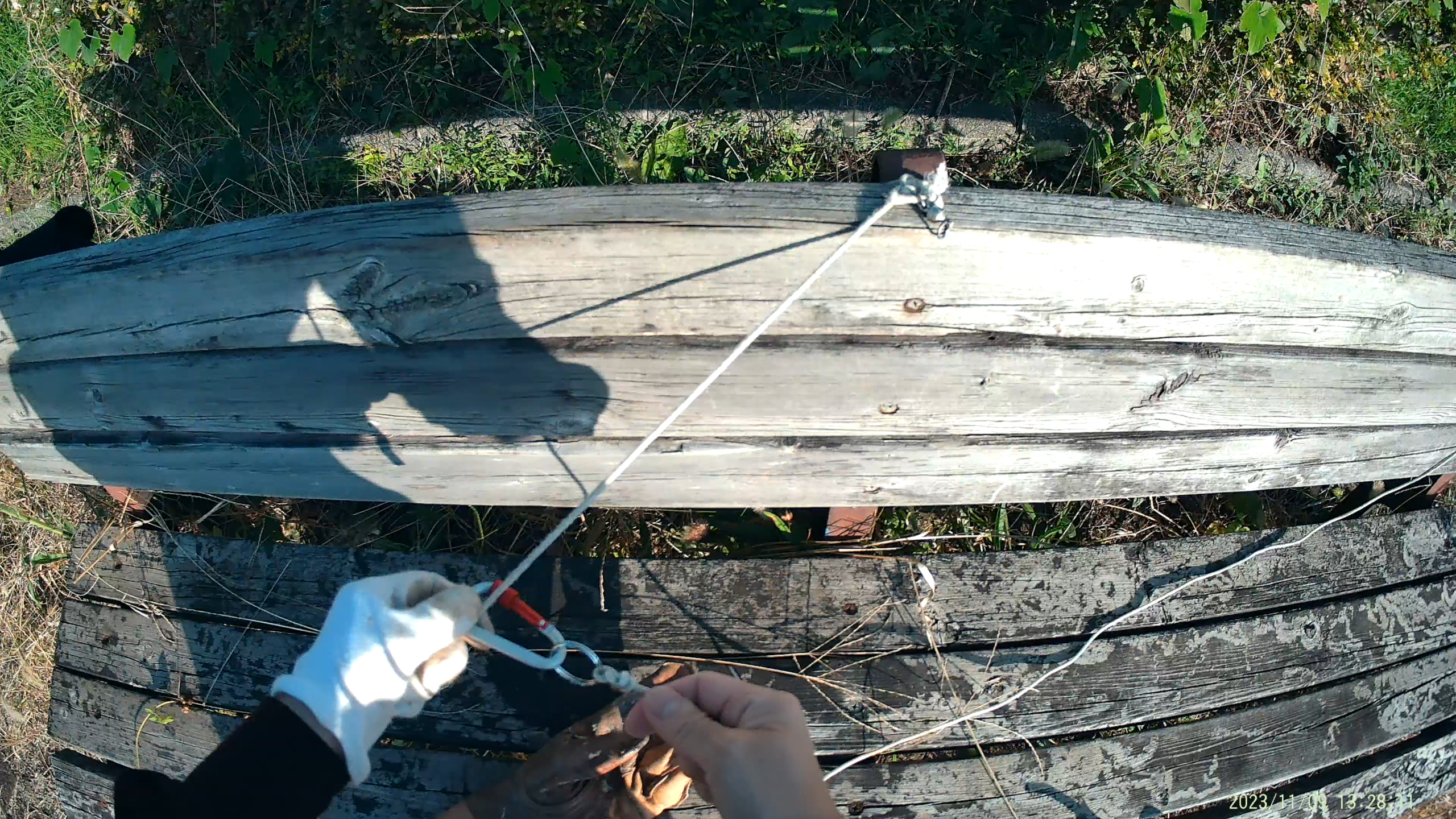 紐がひっかかりながら、この後足場を見つけ無事に姿勢保持
